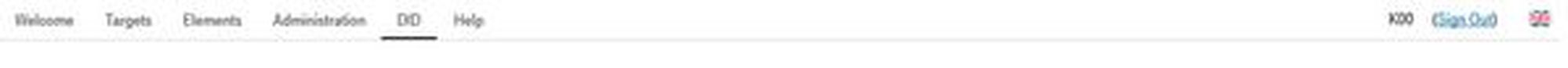 What do the menu items TARGETS, ELEMENTS, ADMINISTRATION and DID on the service site have to offer?