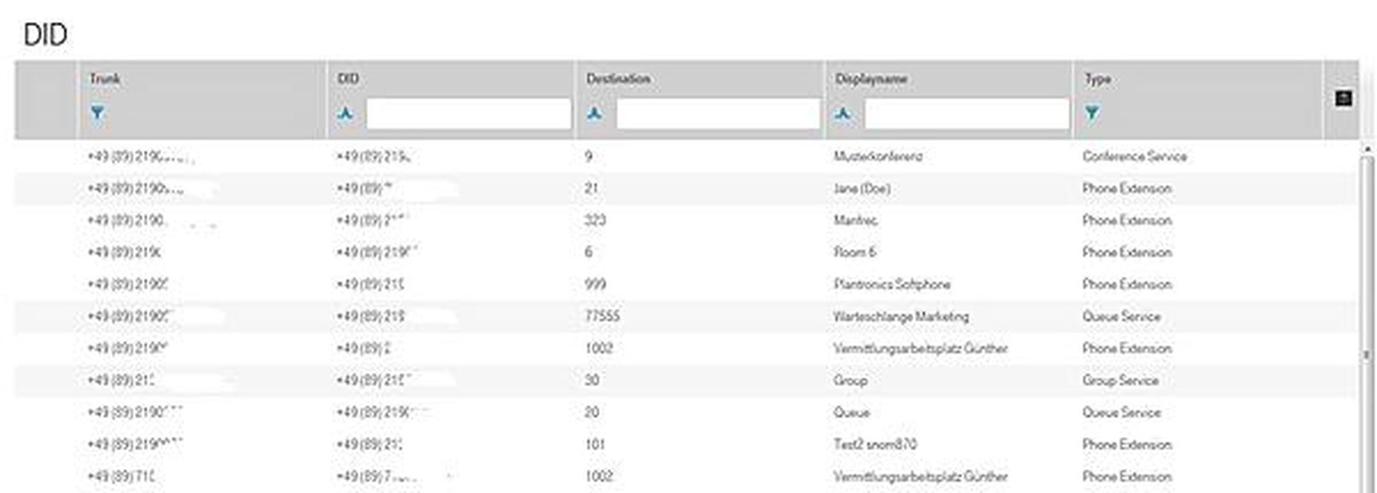 It's possible to add visible DID numbers to the trunk number